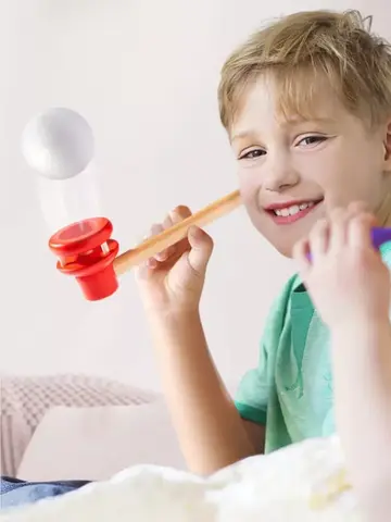 Чтобы начать игру "Парящий шарик" с помощью дыхательного тренажера - аэробола, положите шарик в отверстие и плавно подуйте в трубочку так, чтобы шарик парил в воздухе. Ребенка увлечет игра «кто дольше продержит мячик в воздухе». В процессе игры, вы можете усложнять задания для ребенка. Например, предложите ребенку опускать и поднимать шарик – это способствует развитию силы и продолжительности выдоха малыша.
