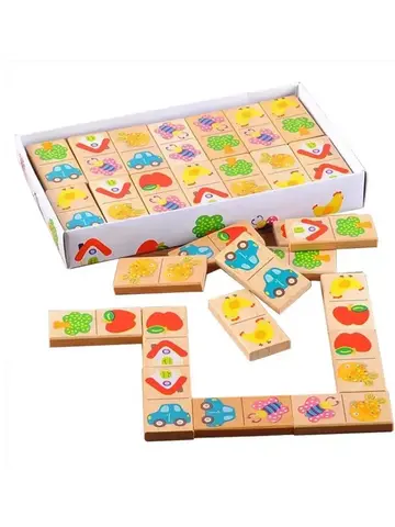 Деревянное детское домино - это увлекательная развивающая настольная игра для детей от 3 лет.