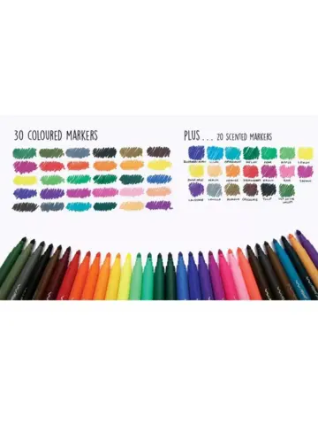 Комплектация 30 разноцветных фломастеров, 20 ароматизированных фломастеров