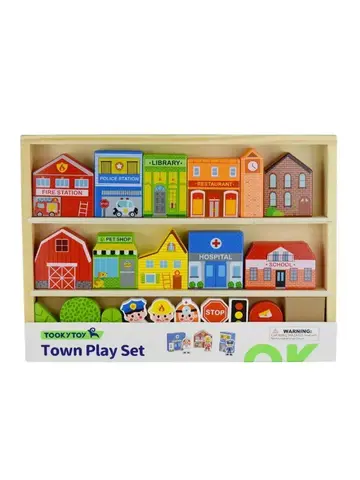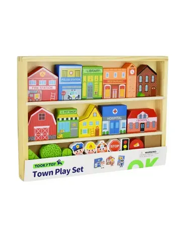 Игровой набор Город от Tooky Toy, состоит из 20 красочных тематических фигурок, которые размещены в деревянную коробочку. С таким набором можно построить целый город и придумать много интересных игр. В наборе вы найдете героев: врач, полицейский, пожарный , а так же фигурки зданий пожарная станция, полицейский участок, библиотека, магазин для животных, школа, больница.