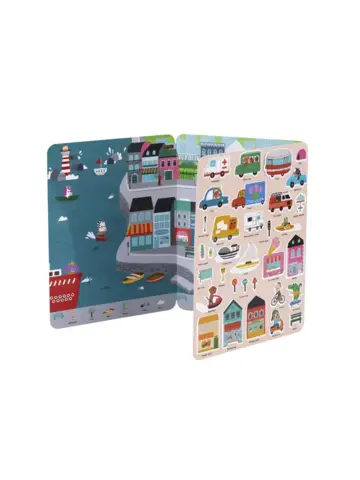 В процессе игры дети смогут исследовать динамичный ритм города, создадут свои собственные городские пейзажи используя многоразовые силиконовые наклейки.