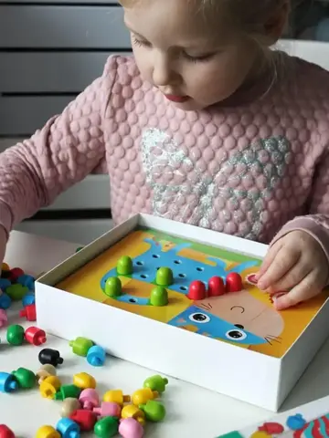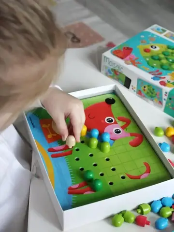 Мозаика - это самый мощный инструмент для развития мелкой моторики. Специалисты раннего развития всегда советуют покупать мелкую мозаику, так как чем мельче фишки, тем активнее работают пальчики у деток и соответственно быстрее развиваются мозговые