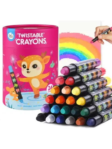 Мягкие карандаши 24 цвета от известного производителя Jar Melo в удобном картонном тубусе. Такие карандаши подойдут даже малышам, так они рисуют очень легко и скользят как шелк по бумаге и другим поверхностям. Многообразие цветов позволит ребенку реализовать свой творческий потенциал на бумаге. Огромный плюс этих карандашей в том, что они легко стираются с гладких поверхностей, кожи ребенка и легко отстирываются с одежды. Могут быть использованы как аквагрим. Абсолютно безопасны, изготовлены на основе воска. Стержень карандаша выкручивается.