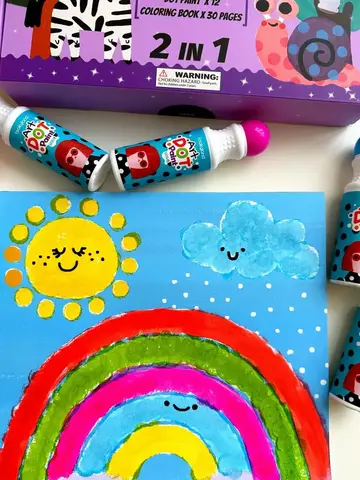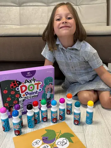 Раскраска для точечных маркеров уже в наборе! В раскраске цветные плотные листы для рисования по шаблонам и чистые плотные листы для фантазийных рисунков, чтобы ребенок сразу мог приступить к работе.
