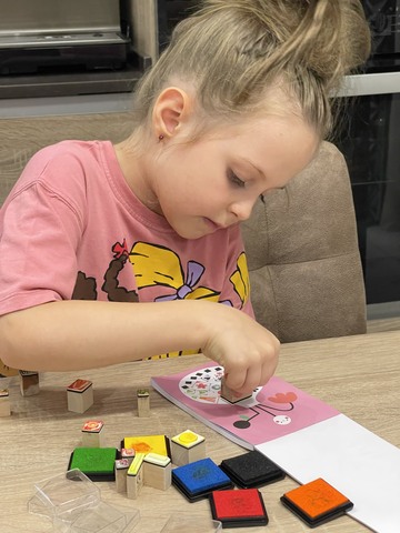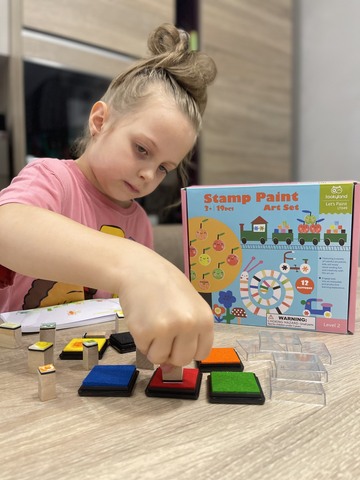 Набор детских печатей (штампиков) - отличный подарок для любого ребенка. Детские штампы могут ярко и без усилий украсить альбомы, открытки, тетради и подарки. Наш набор состоит из 12 мягких печатей, с помощью которых вы сможете разнообразить изучение цветов, придумать всевозможные игры и надолго увлечь непосед. Набор для творчества представляет собой удобные в использовании деревянные штапмы, с мягкими насадками разных форм. Все, что нужно ребенку это обмакнуть их в штемпельную подушечку, которых в наборе 6 штук (зеленая, желтая, красная, оранжевая, черная и синяя). В набор входит блокнот с рисунками на которых можно рисовать печатями и чистыми листами для полета фантазии и творчества. При попадании на кожу лица и тела, одежды и рабочей поверхности, краска легко смывается водой и быстро отстирывается. Штампики пригодятся детям от 3 лет для дома, детского сада и школы. Детские печати отличный инструмент для развития мелкой моторики. Внимание: набор содержит мелкие детали, детям до 3 лет играть под пристальным вниманием взрослых.
