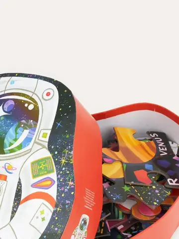 В красивой коробке, изготовленной в форме космонавта, маленьких любителей космоса ждет 36 деталей высокой плотности.