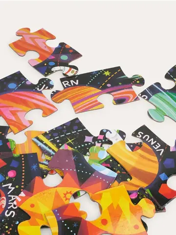 Собранная из пазлов композиция познакомит деток с названием планет (обращаем ваше внимание, что название планет указано на английском языке).