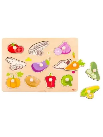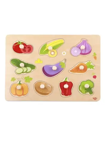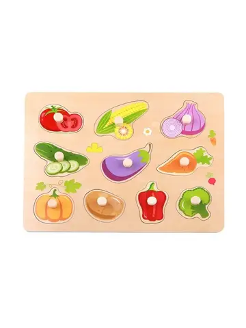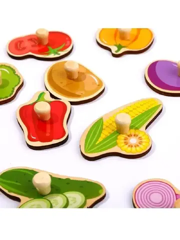 Деревянная развивающая доска Овощи - это игровая панель для развития мелкой моторики, внимания, усидчивости и воображения Вашего малыша. Достаньте вкладыши из ячеек и предложите ребенку разложить их по своим места, проговаривайте названия овощей, обсудите цвет и форму. Материал: дерево. У каждого вкладыша имеется круглая деревянная ручка.