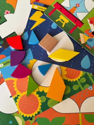 Продвинутая версия, адаптированная для детей от 3 лет состоит из 9 деревянных деталей и 2 наборов двусторонних карточек разного размера -7 шт размером 19 на 19 см, 10 шт - 19 на 15 см, с помощью которых от простого к более сложному можно собрать самые различные конструкции по образцу.